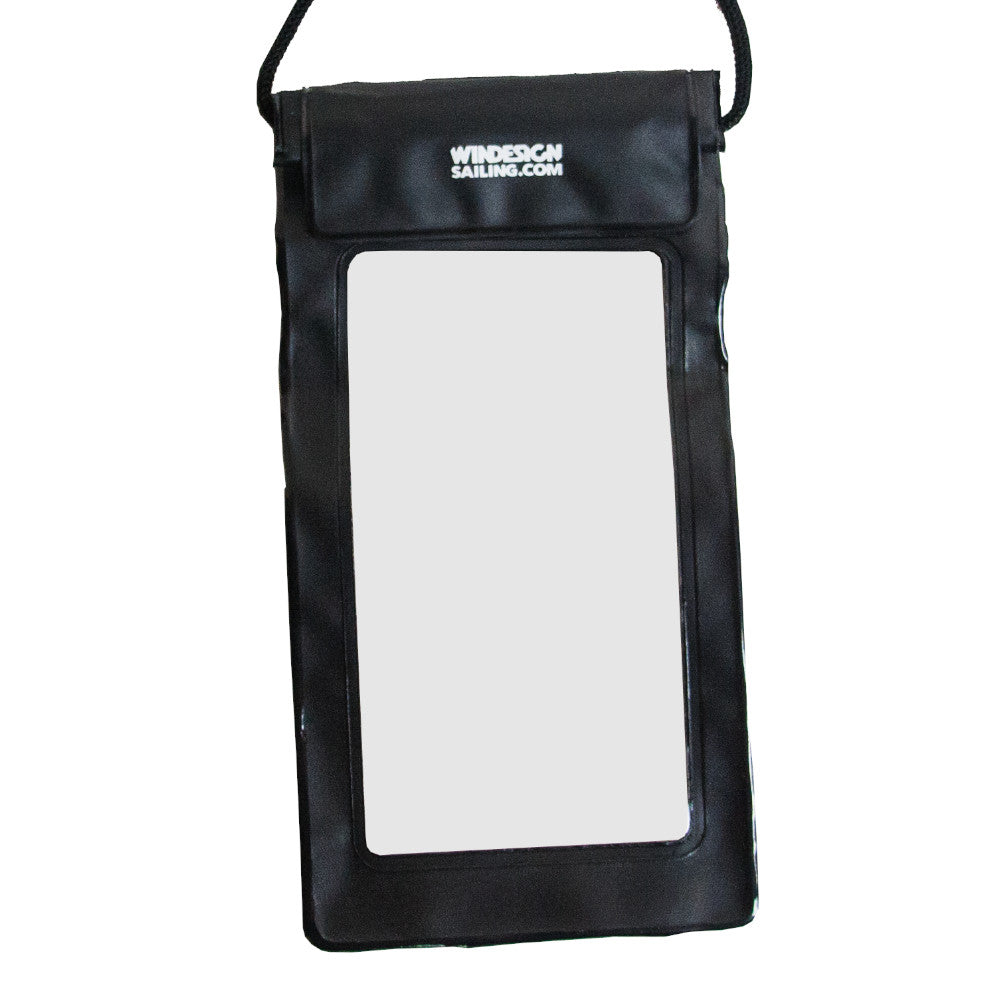 Waterproof bag for phone, wallet, keys, credit card or camera. Made of touch flexible vinyl, 3 double secured closures, lanyard. Inside size 9 x 17cm.