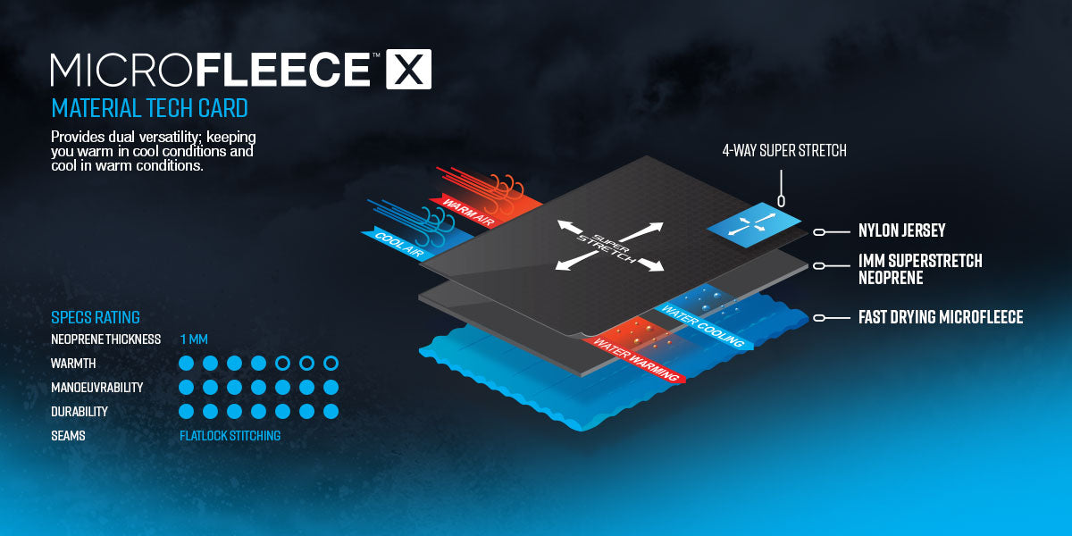 An evolution in wetsuit design, the Microfleece™ X wetsuit range combines the latest in materials and technologies to achieve the ultimate in comfort and flexibility for all weather versatility. Designed and developed using the latest 3D modelling technologies, Microfleece™ X wetsuits provide unrivalled flexibility and comfort, combining our fast-drying Microfleece™ lining with our lightweight, 1mm super-stretch neoprene.